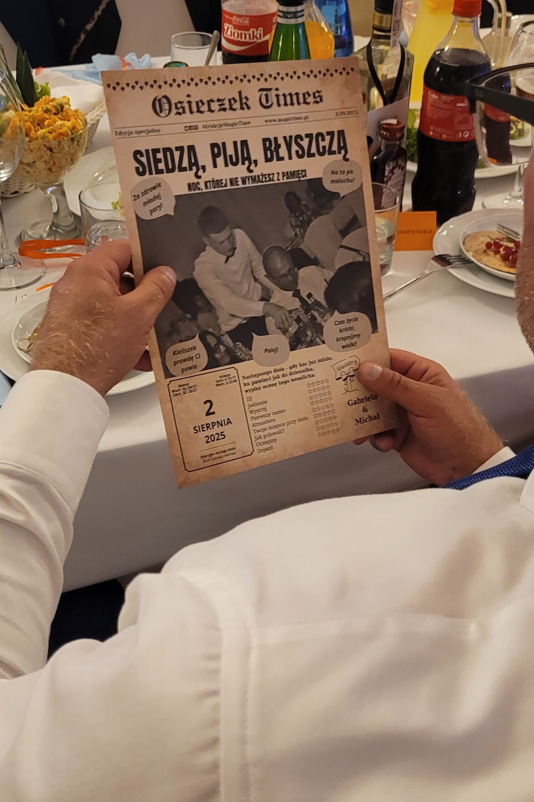 Humorystyczna wersja gazety, propozycja dla tych, którzy mają dystans do siebie i kochają dobrą zabawę! Idealna na imprezy, gdzie liczy się dobra energia, śmiech i oryginalność.