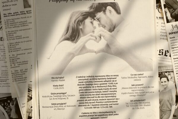Wyobraź sobie reakcję Twoich gości, gdy zamiast tradycyjnego zaproszenia otrzymają… personalizowaną gazetę z najważniejszymi informacjami o Waszym wielkim dniu! 🌸💍 Co może zawierać takie wyjątkowe zaproszenie?📌 Waszą Love Story – jak się poznaliście, pierwsze spotkanie, zaręczyny – opowiedzcie swoją historię!📌 Szczegóły ceremonii i wesela – miejsce, godzina, dress code – wszystko jasno i przejrzyście w jednym miejscu.📌 Ciekawostki o Was – ulubione miejsca, pierwsze wspólne podróże czy zabawne fakty – niech goście lepiej Was poznają!📌