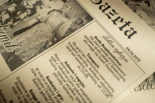 Organizujesz wesele i chcesz, żeby wszystko było dopięte na ostatni guzik? 🎉 Tablica ogłoszeń w Twojej gazecie weselnej to sposób na bezproblemowe przekazywanie najważniejszych informacji gościom. Dlaczego to takie świetne rozwiązanie? Oto kilka powodów: 📝 Wszystko w jednym miejscuNie musisz biegać między stołami i tłumaczyć gościom szczegółów harmonogramu, miejsc siedzących czy innych ważnych informacji. Dzięki tablicy ogłoszeń w gazecie, goście mają je wszystkie „na tacy”. ⏳ Oszczędność czasuMasz już dość powtarzania „O której pierwszy taniec?”