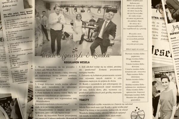 Planujesz wesele i chcesz zaskoczyć gości czymś wyjątkowym? Stwórzcie personalizowaną gazetę weselną, która stanie się niezapomnianą pamiątką z Waszego dnia! 💡 Co możemy w niej zawrzeć?🔹 Regulamin wesela – z humorem lub na poważnie, idealny sposób, by poinformować gości o zasadach zabawy!🔹 Toasty i dedykacje – miejsca na wspólne wspomnienia, podziękowania i życzenia.🔹 Cytaty ślubne – romantyczne i inspirujące, idealnie oddające magię Waszego dnia.🔹 A może coś jeszcze? Quizy, anegdoty, harmonogram, ciekawostki o Was –