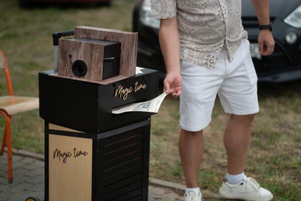 Pamiątka ze zdjęciem gości i wybranymi tekstami, którą otrzymujesz zaraz po zrobieniu zdjęcia.